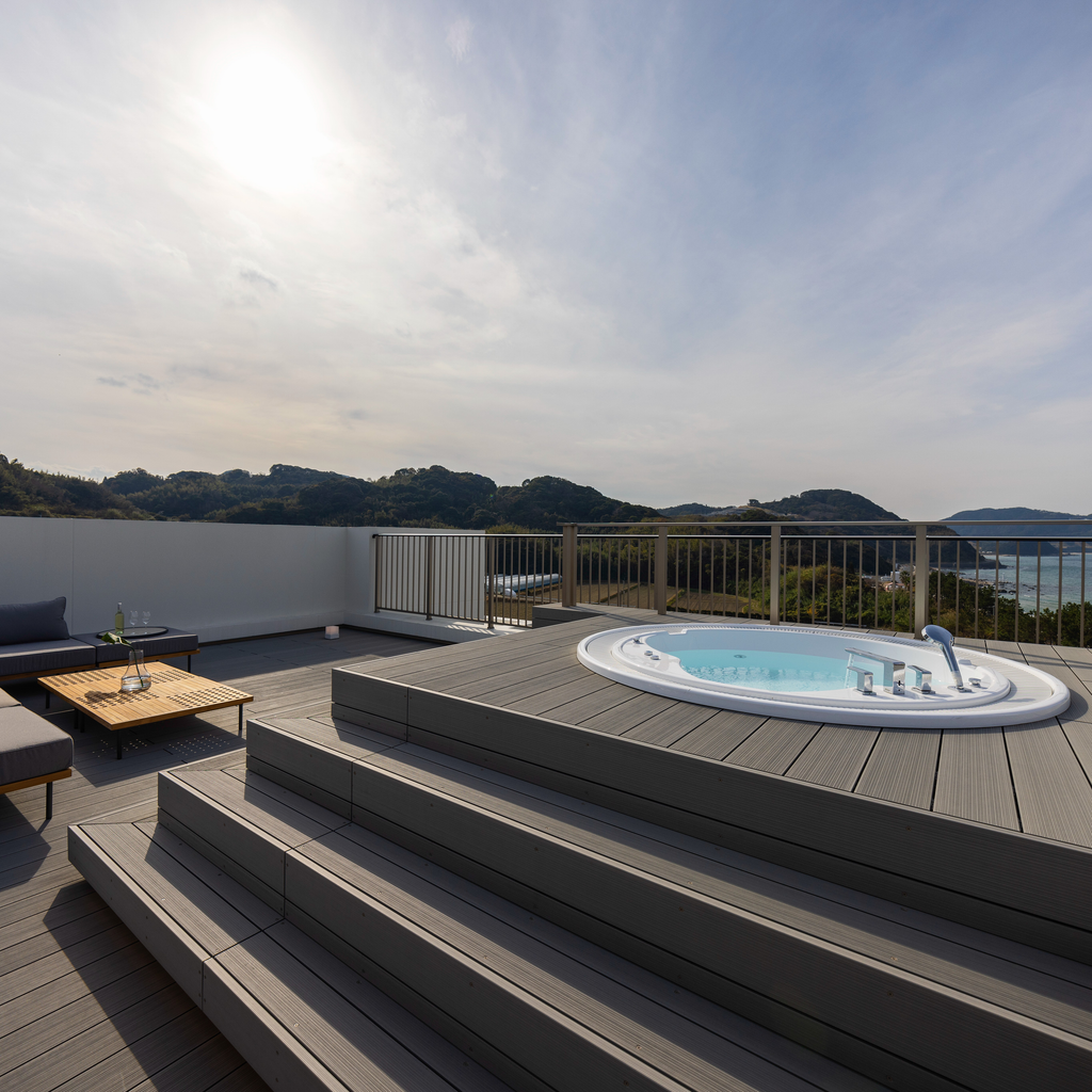 熱川高原の丘からの壮大なパノラマ。全室温泉露天風呂付きの宿でプレミアムな体験を